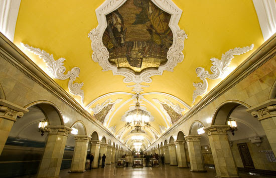 Stasiun Moscow ini sungguh indah dan sangat artistik, dibangun tahun 1930 stasiun ini penuh dengan karya seni yang terbuat dari tangan.